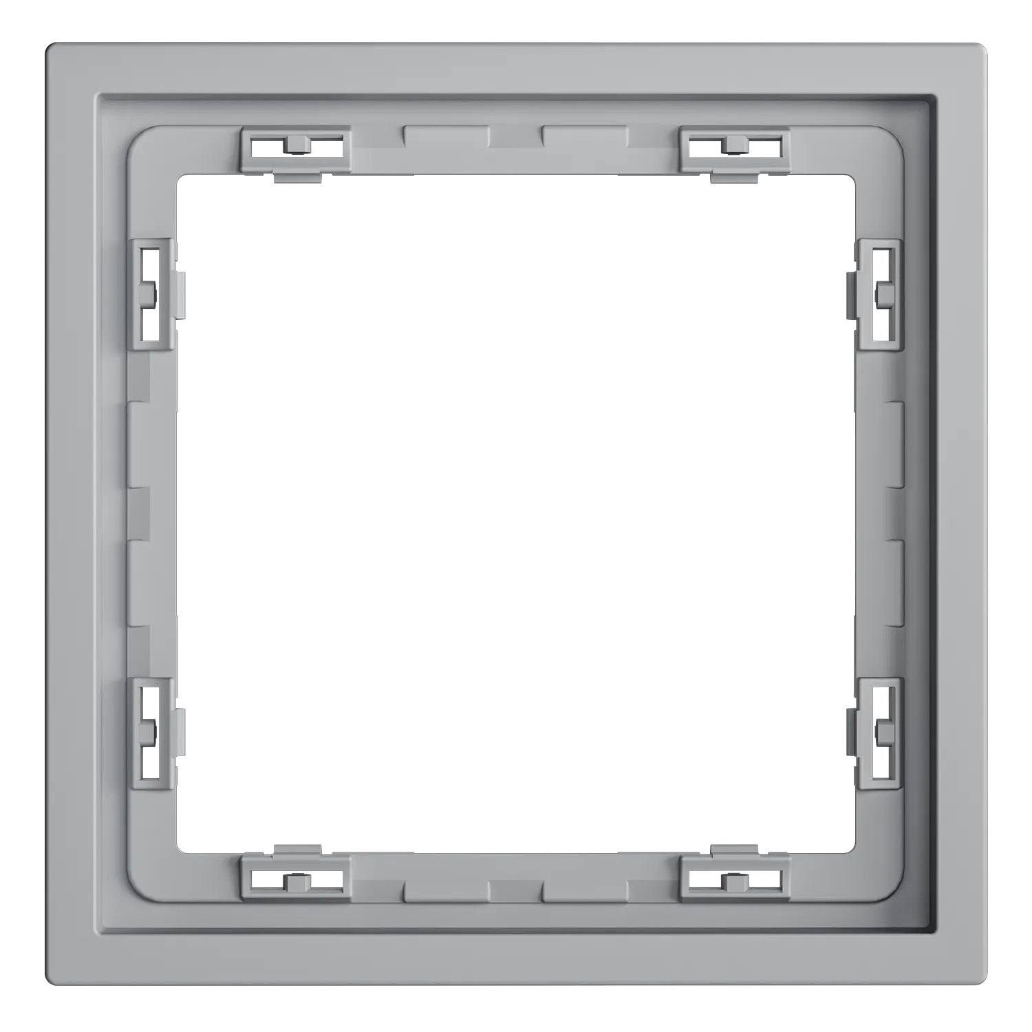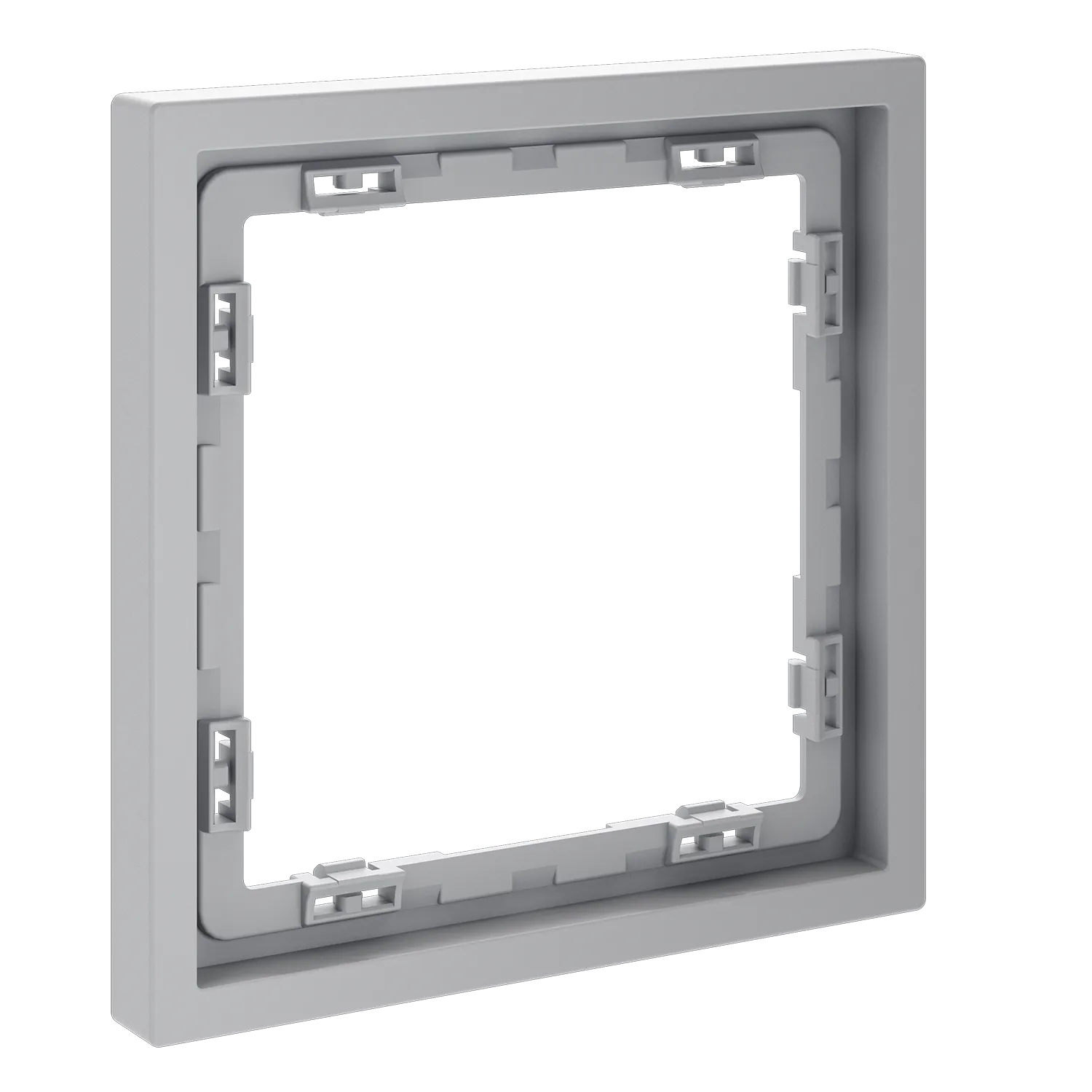 Обеспечивает быстрое и легкое соединение механизма с рамкой. Восемь фиксаторов по периметру нивелируют неровности стены и надежно удерживают конструкцию.