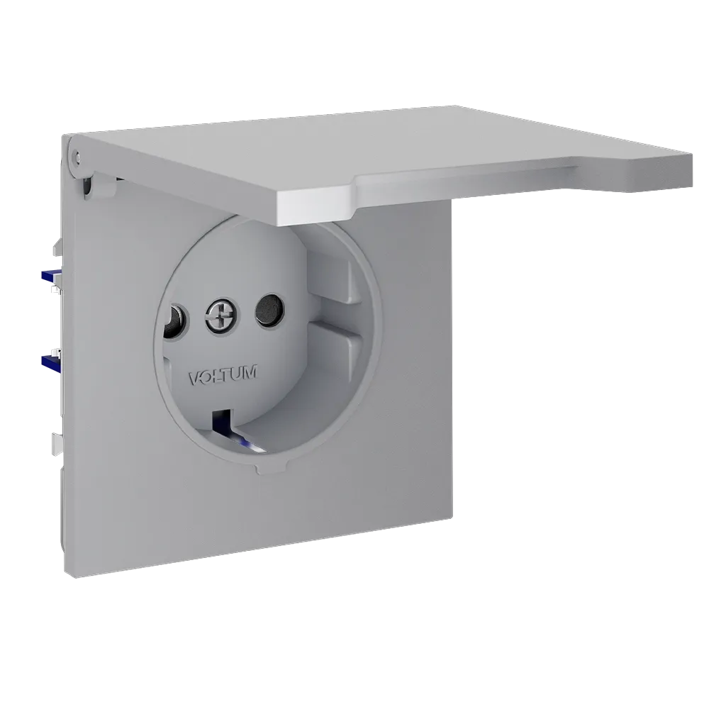Розетка VOLTUM S70 с заземлением и защитными шторками и откидной крышкой  — это решение максимальной безопасности и эстетики для современного интерьера. Идеально подходит для детских комнат, ванных, прихожих, кухонь и уличных зон под навесом, где важна защита от пыли, брызг и случайного контакта с токоведущими частями.